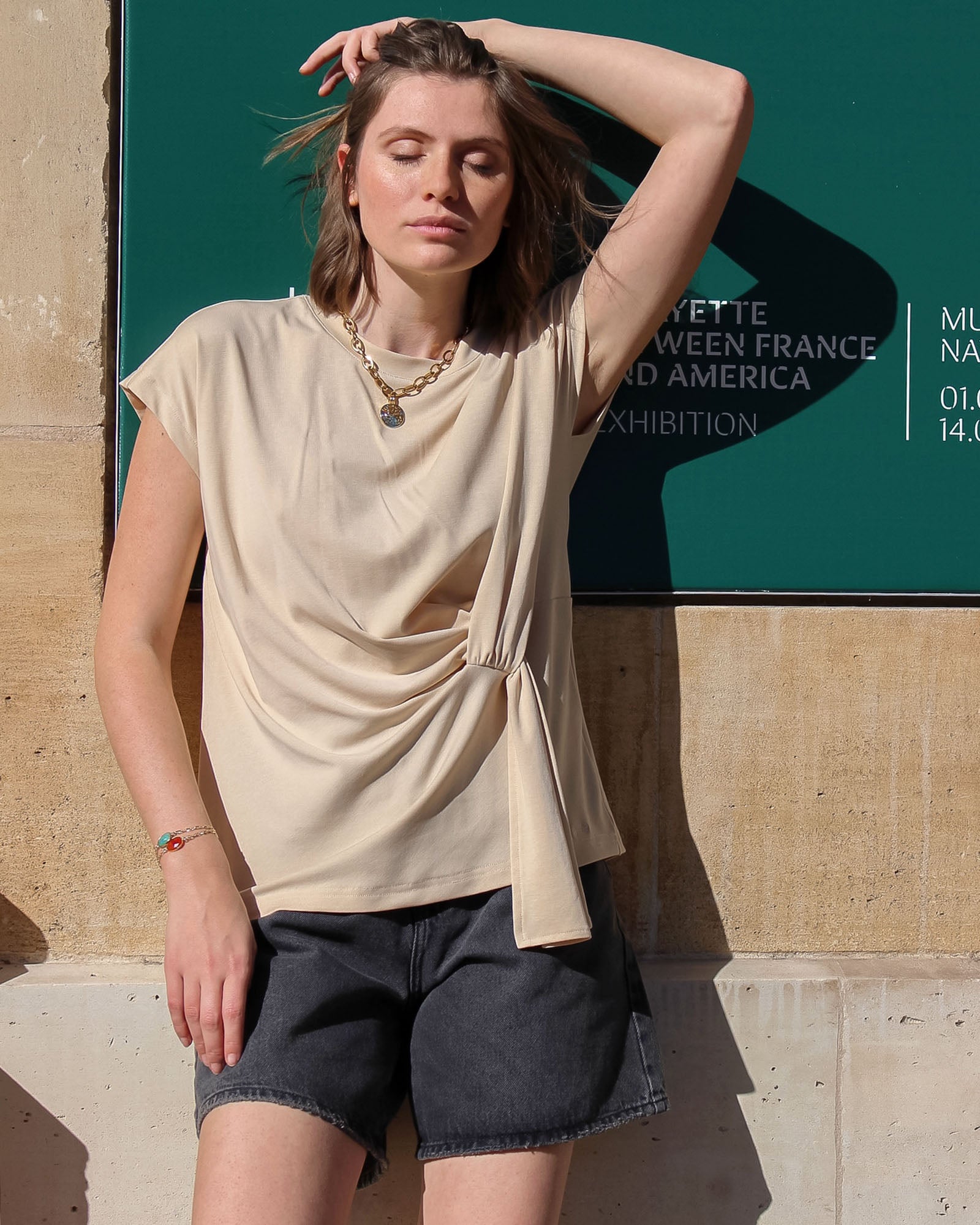 Le collier Sandra apporte une touche d'audace à votre tenue avec sa chaîne imposante et sa médaille texturée.