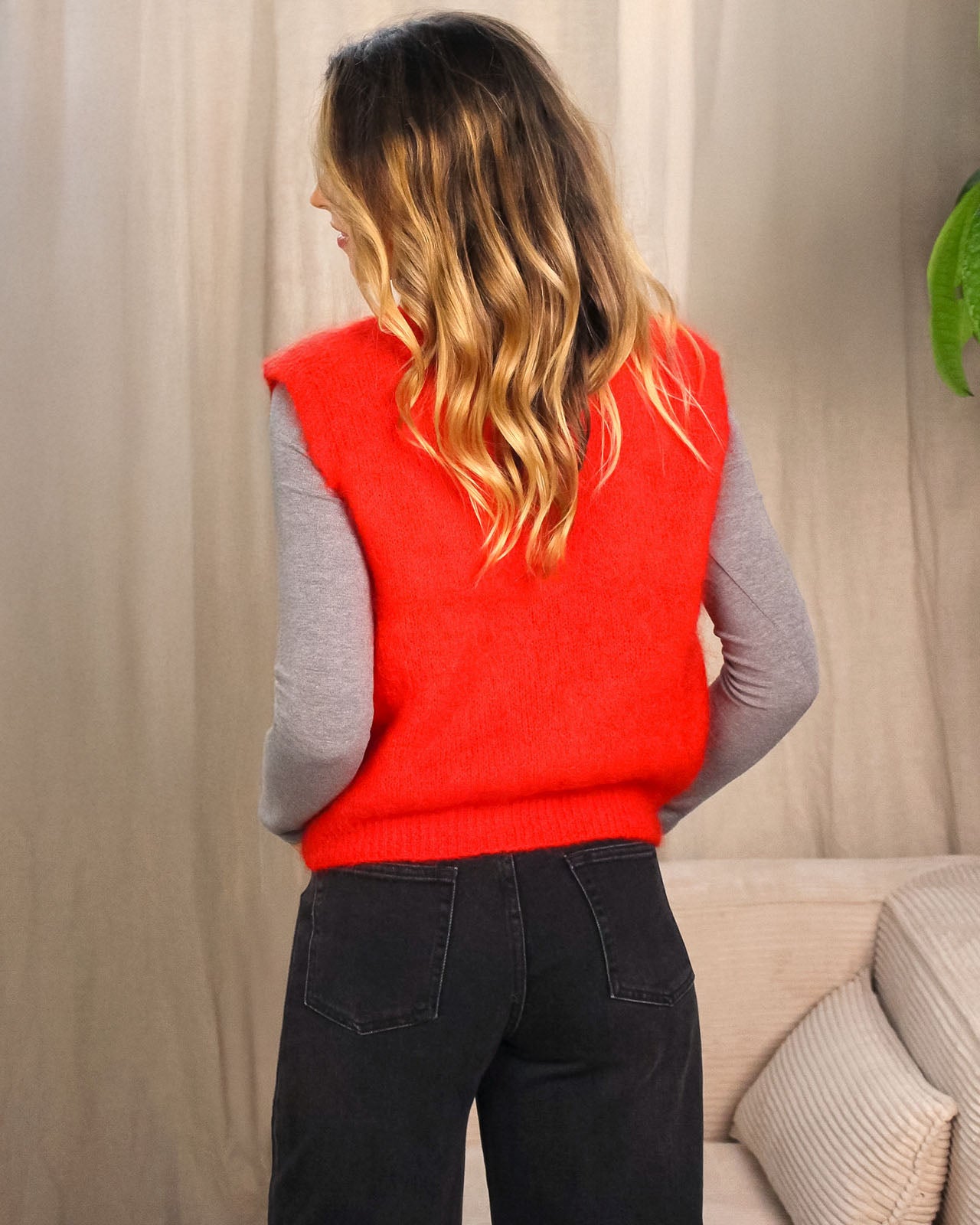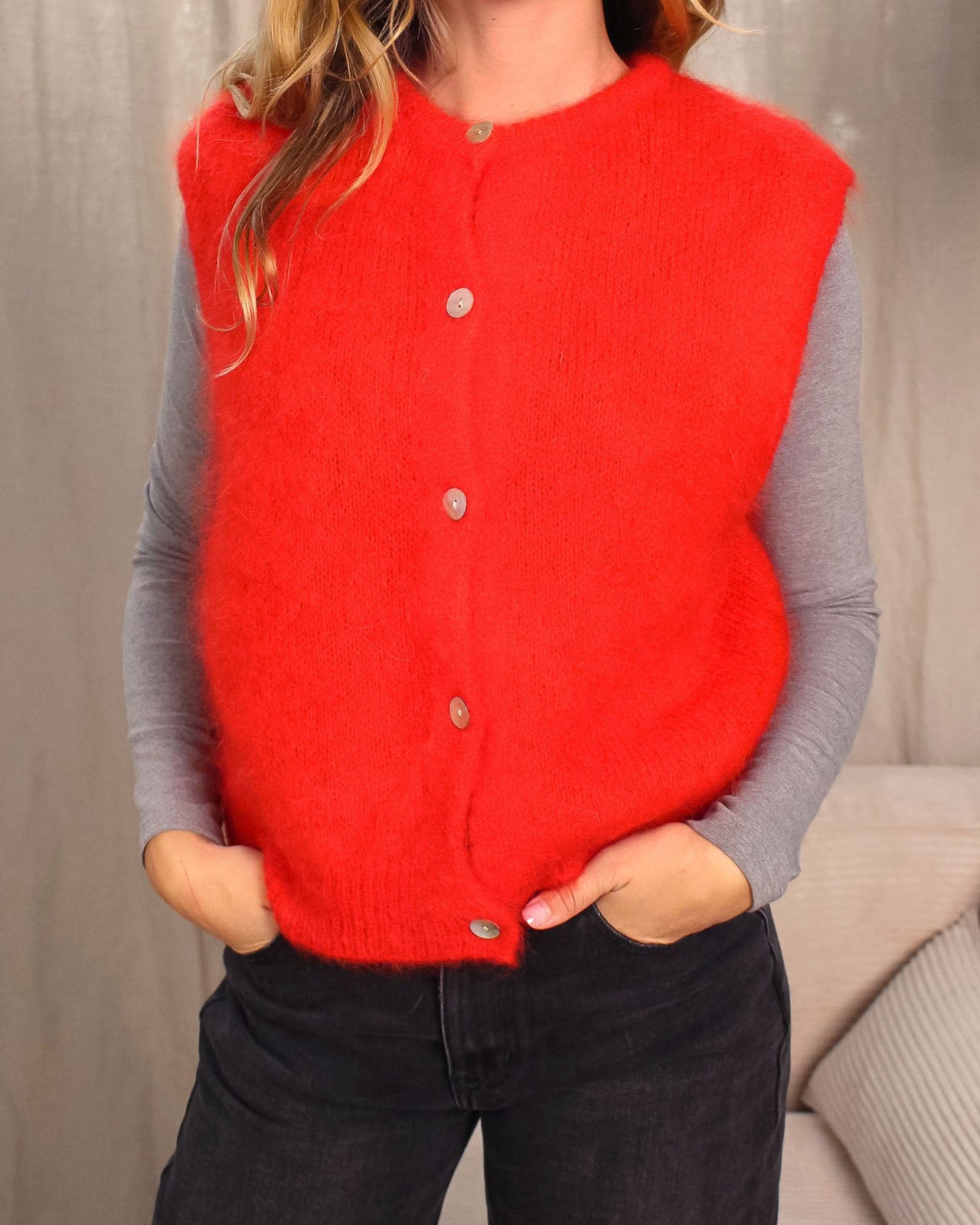 Le gilet Jimmy se porte sur une chemise ou un tee-shirt manches longues. On aime sa maille en mohair qui apporte une touche de douceur à nos looks !