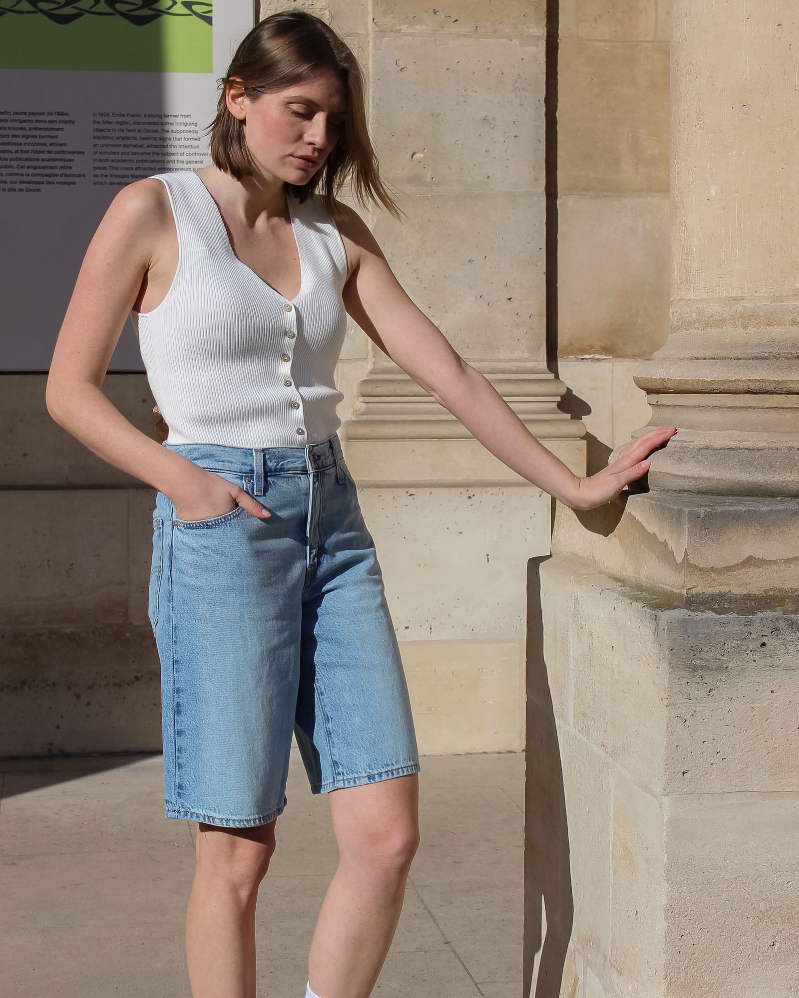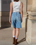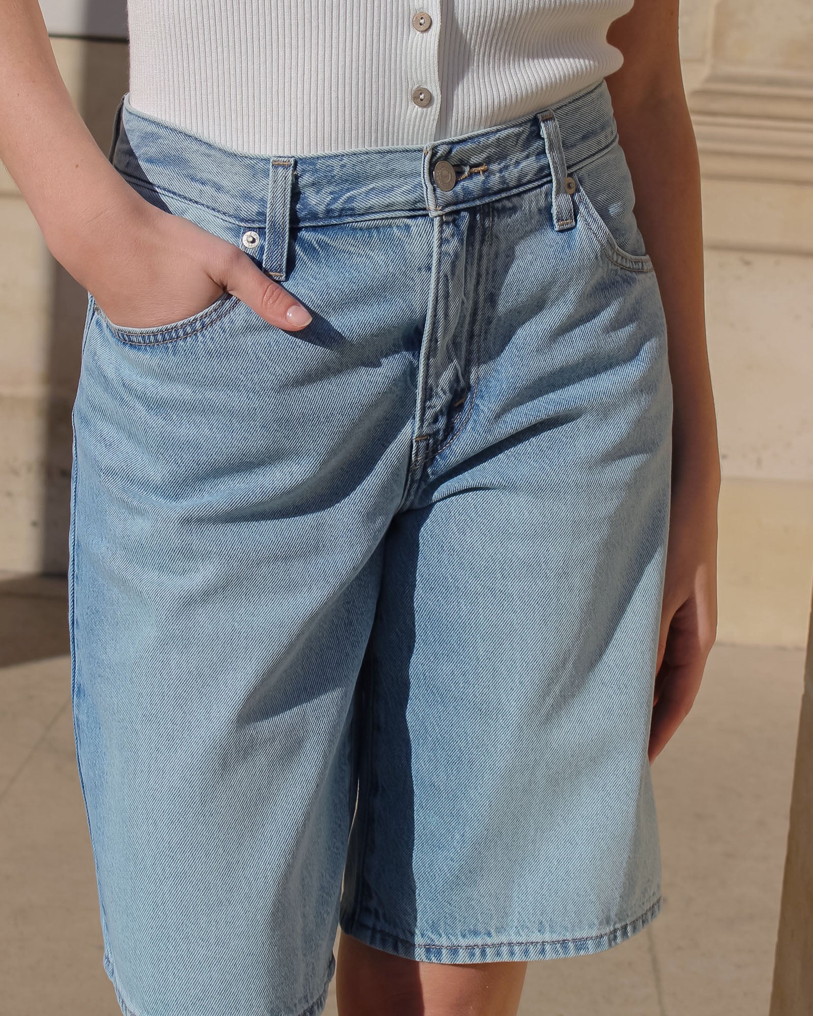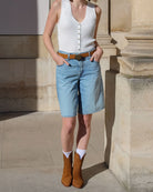 Le Bermuda Dad Jort adopte une allure cool et décontractée, empruntant les codes du vestiaire masculin pour un style résolument moderne.