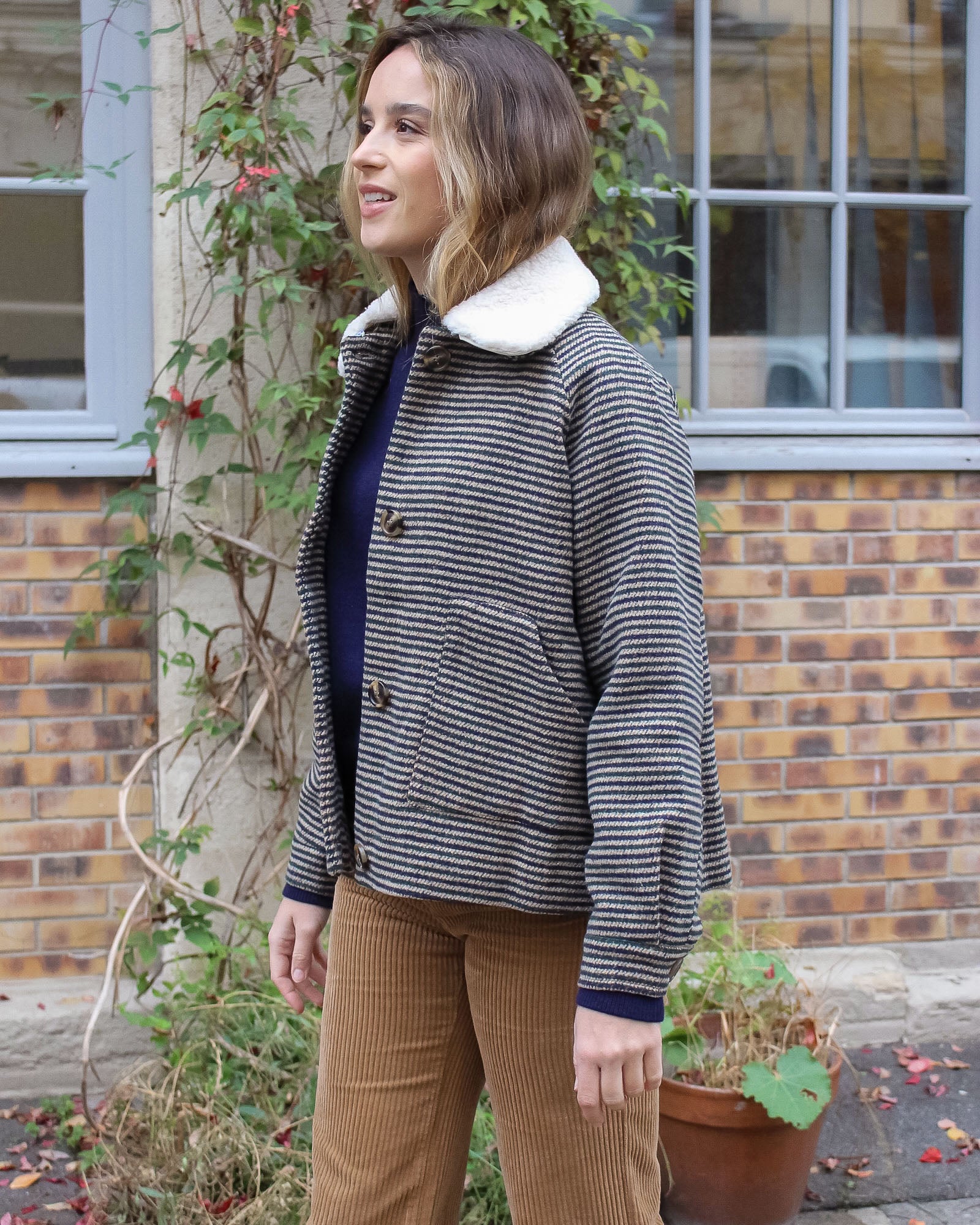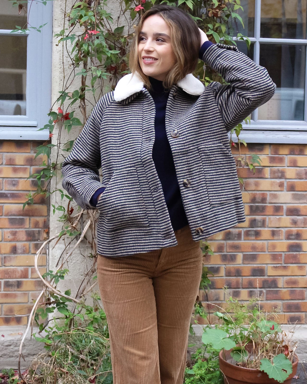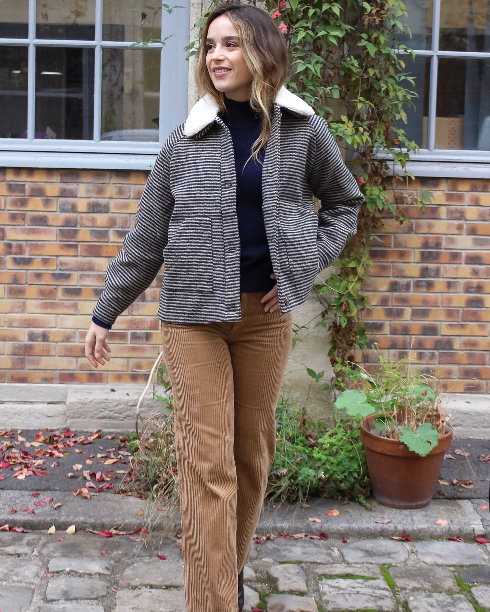 Le petit blouson d'hiver qu'on associe avec un pantalon en velours pour un look trendy-chic !