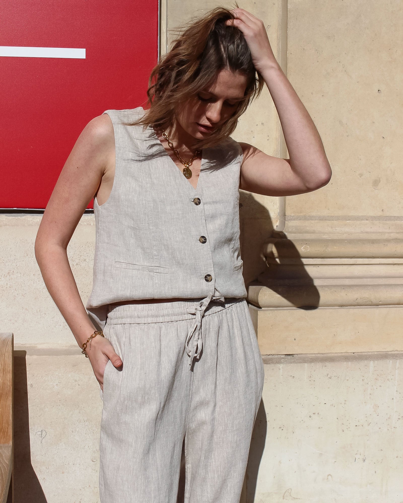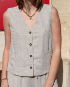 Le gilet Vianaginia apporte une touche d'élégance structurée à vos looks avec sa coupe tailleur.
