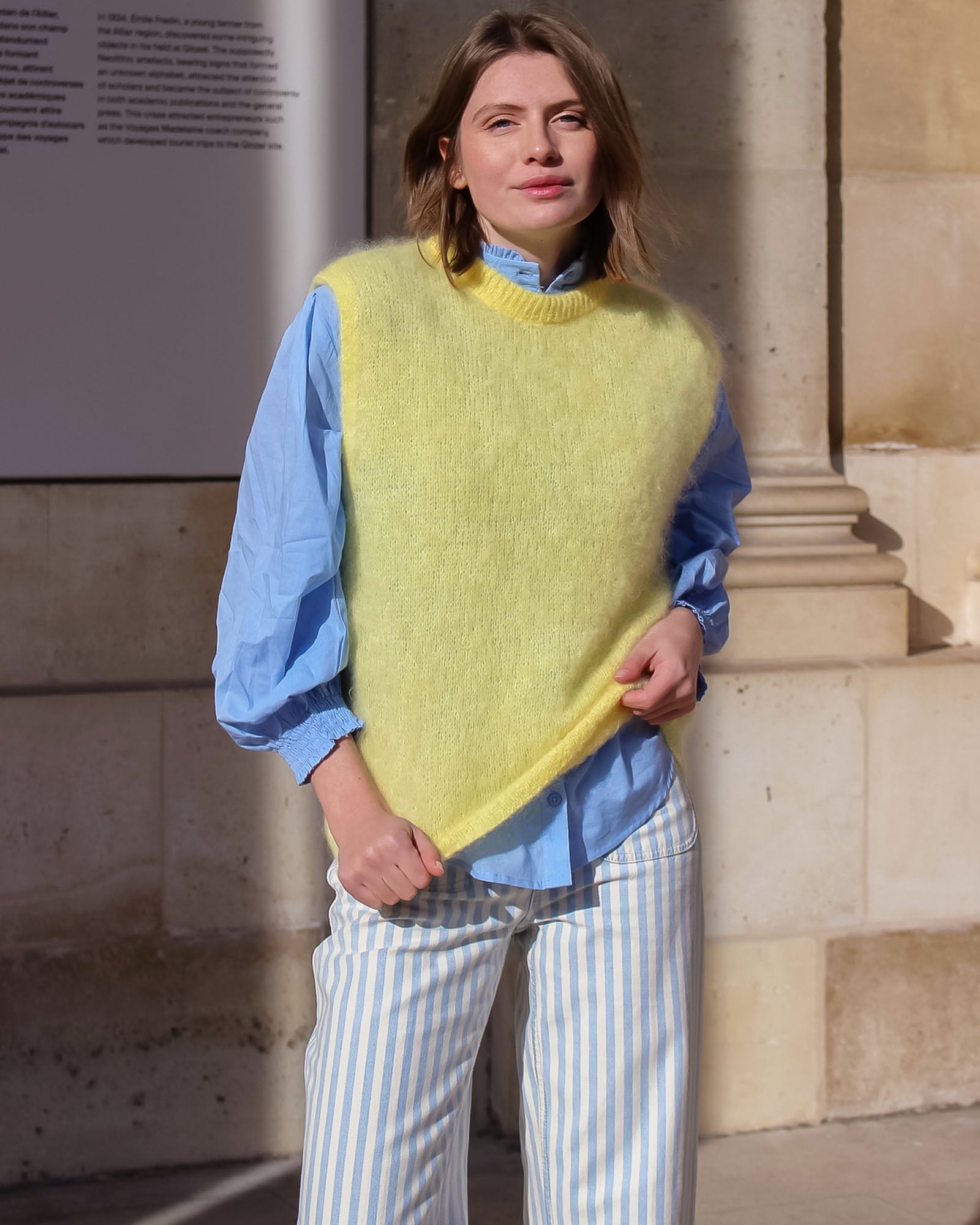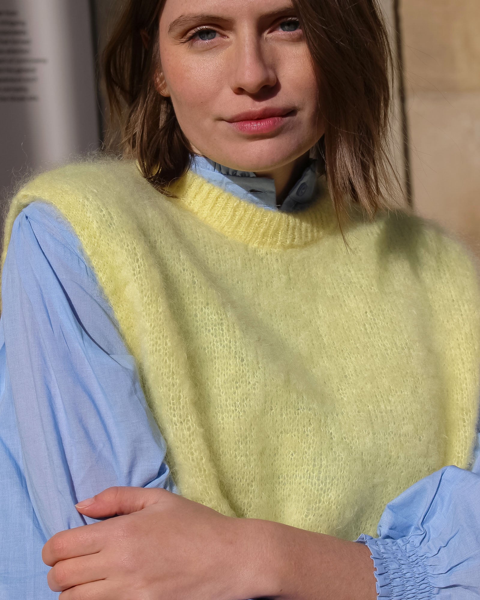 Calvin, c'est le pull sans manches doux et moelleux dans lequel on a chaud et on se sent bien. Il est canon porté avec une chemise ou un tee-shirt manches longues !