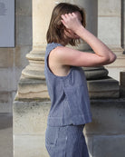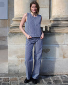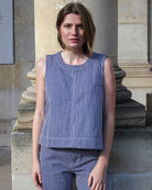 Le top Iza Stripe structure votre allure avec ses rayures : une pièce forte qui donnera tout de suite du caractère à votre look ! Il forme un ensemble avec le pantalon Forest.
