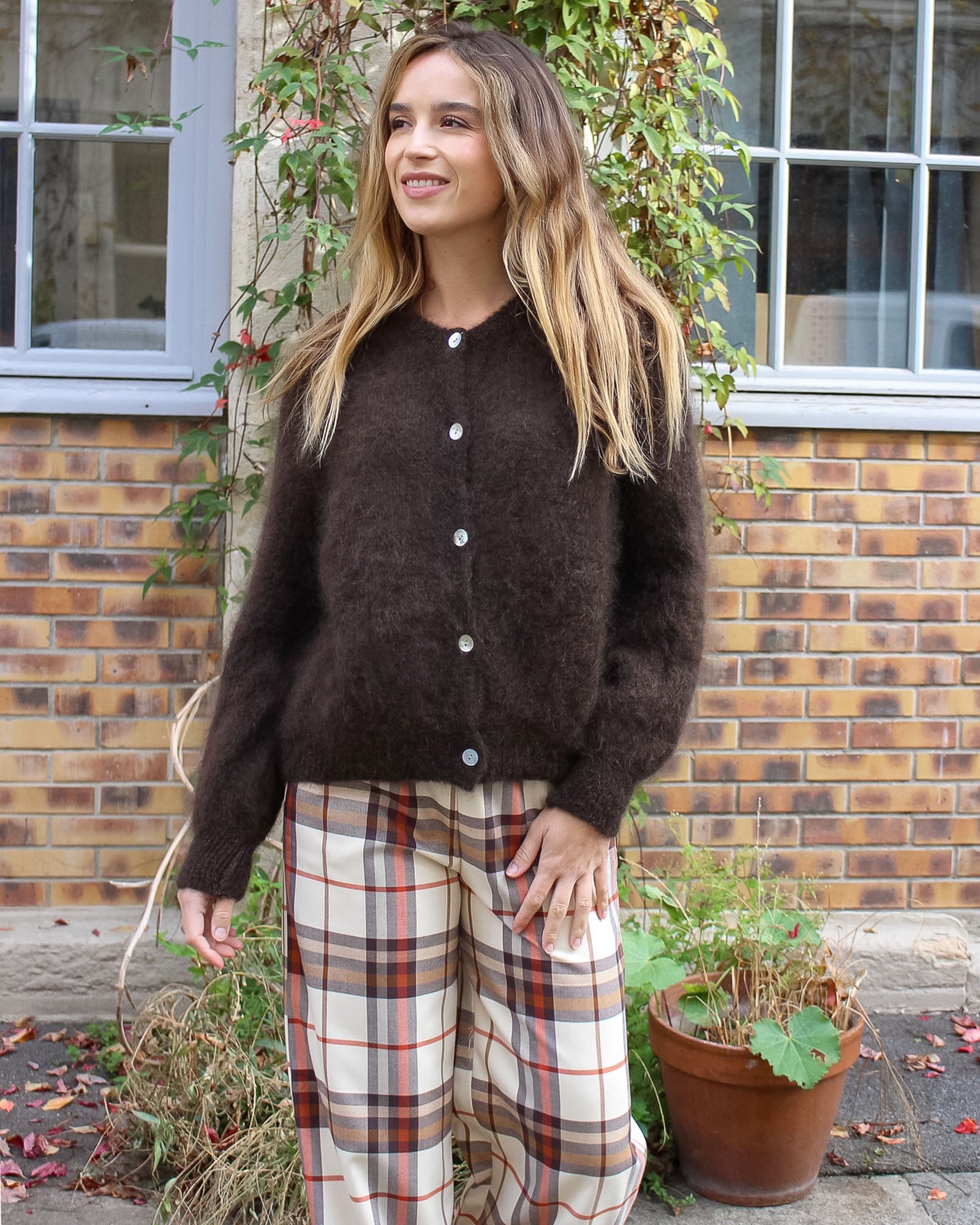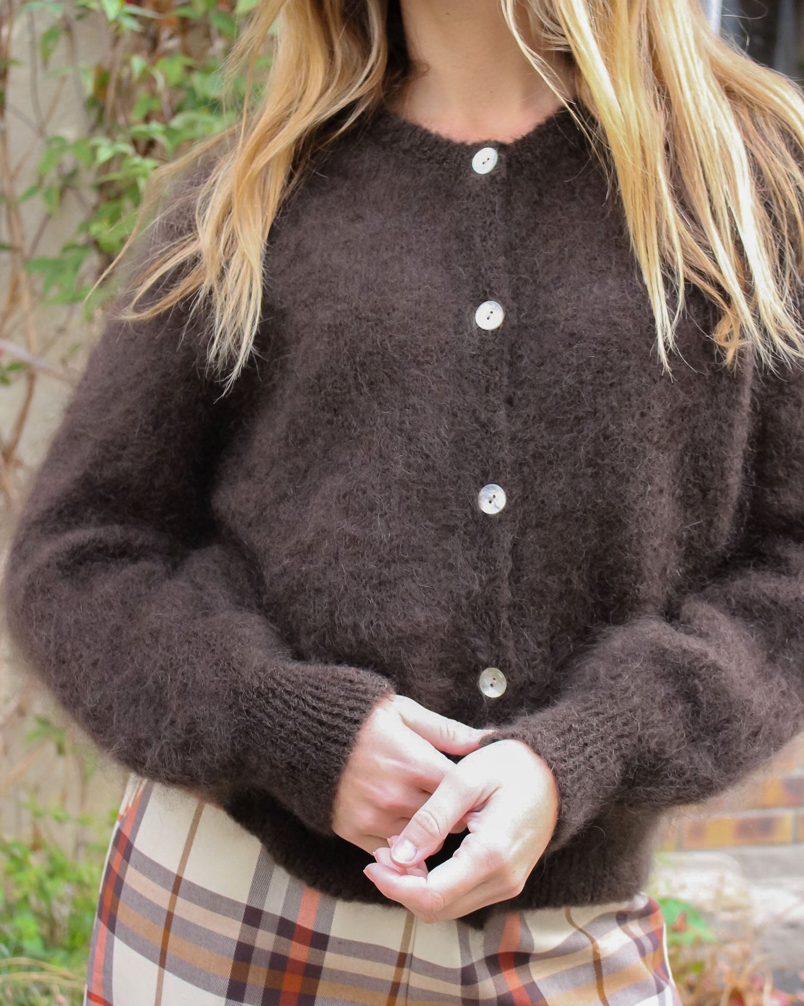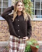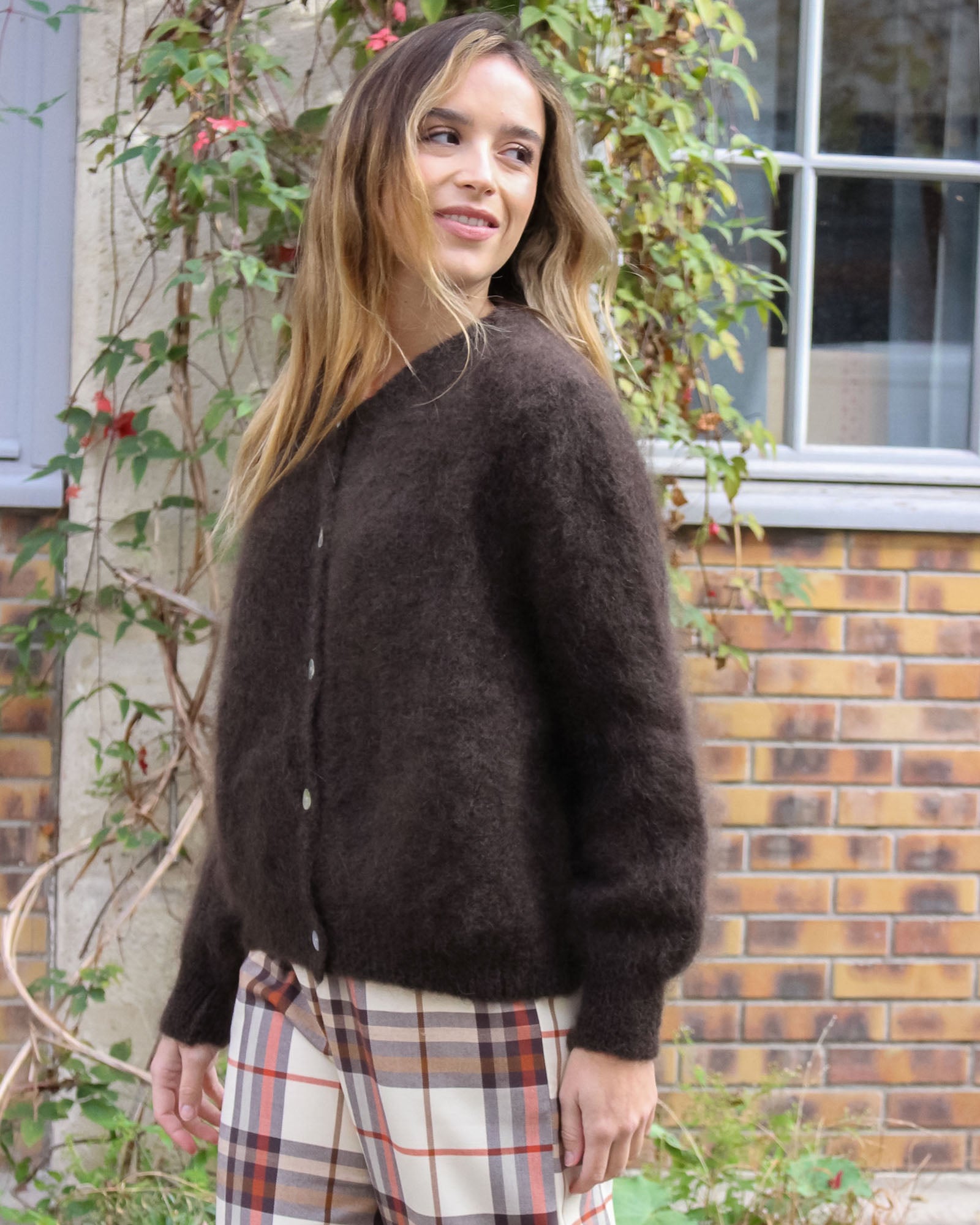 Une maille duveteuse et chaude en kid mohair : on adore le côté fluffy du gilet Carrick ! Il peut se porter boutonné jusqu'en haut comme un pull, ou ouvert sur un top.