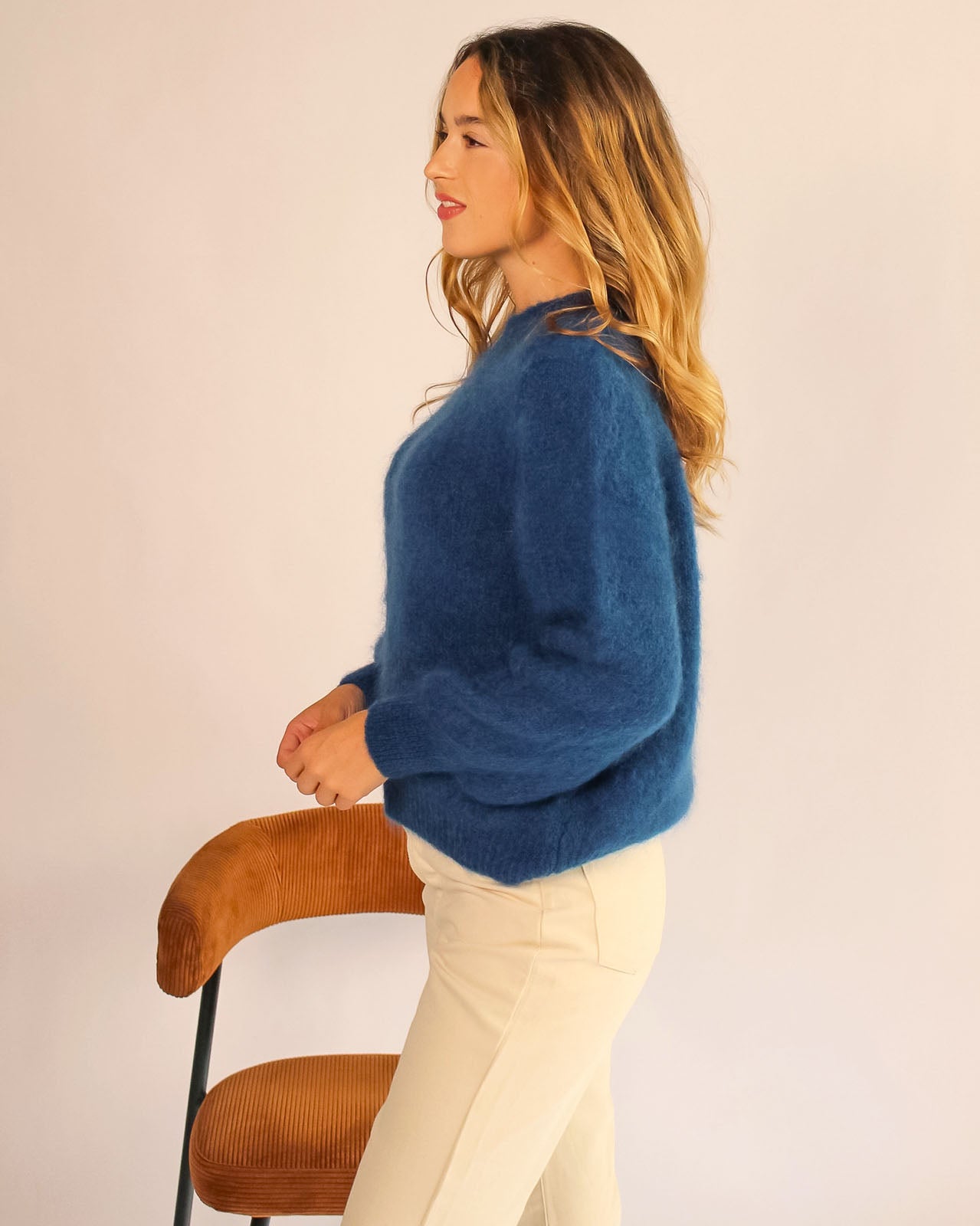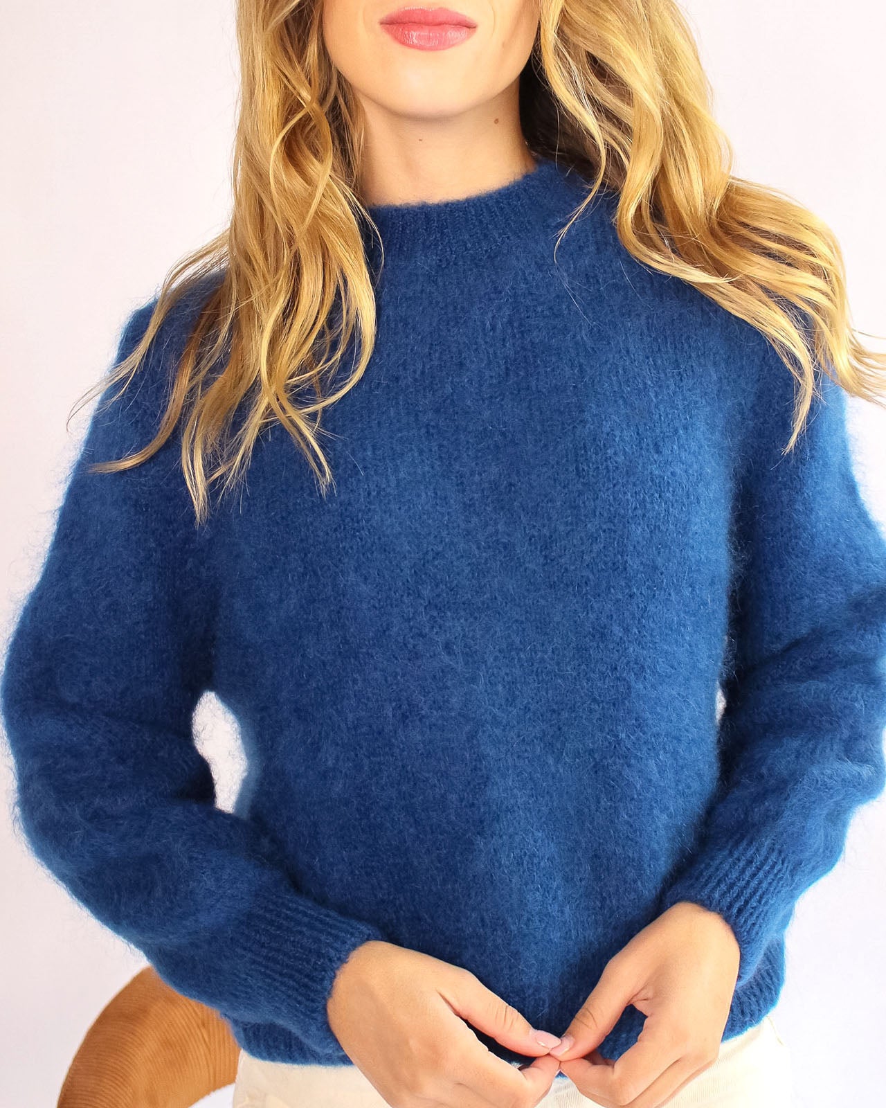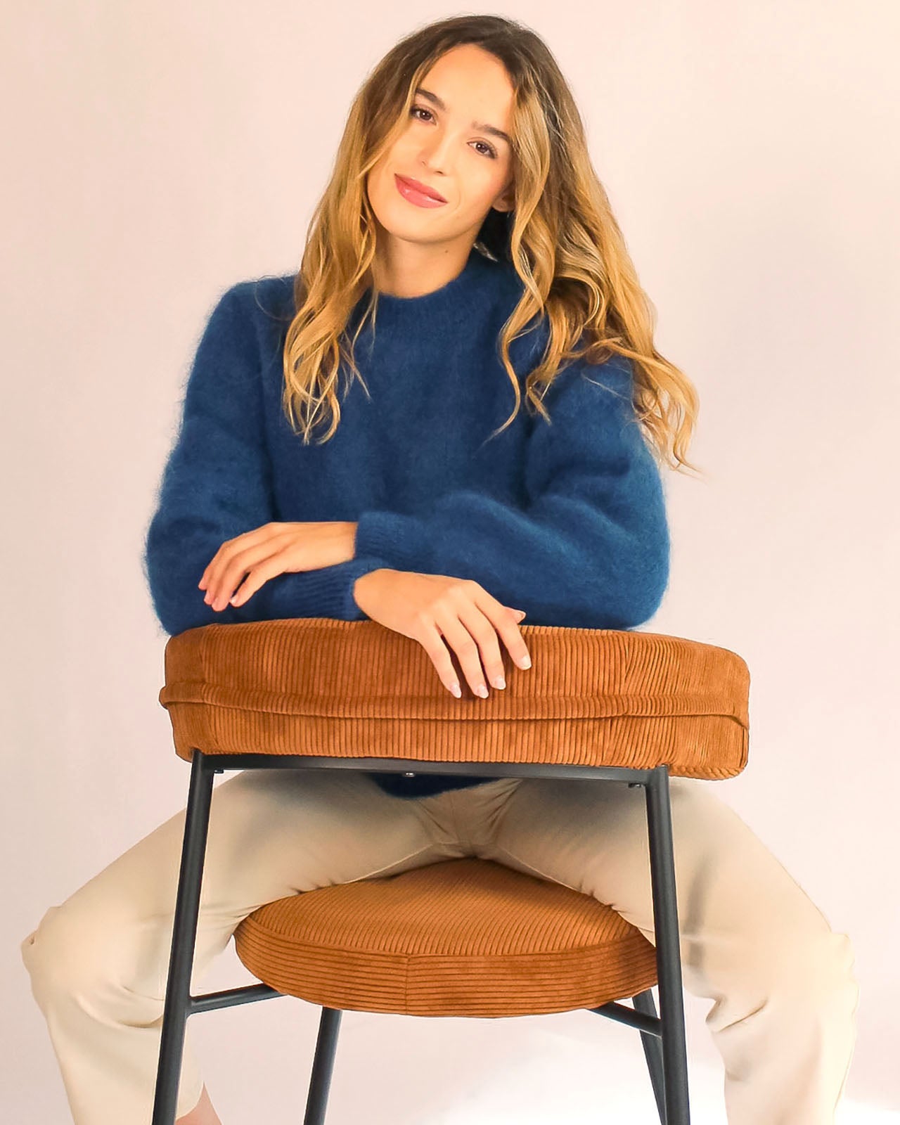 Le pull Carter séduit par sa coupe ample et son toucher doux. Sa maille fluffy lui confère une texture compacte et chaude. Le meilleur allié de notre hiver !