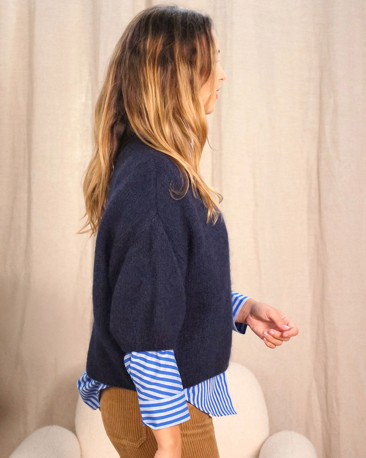 Ronald, c'est le petit pull manches courtes qu'on adore ! Décliné dans une large palette de couleurs, il se porte à même la peau ou avec une chemise en-dessous.