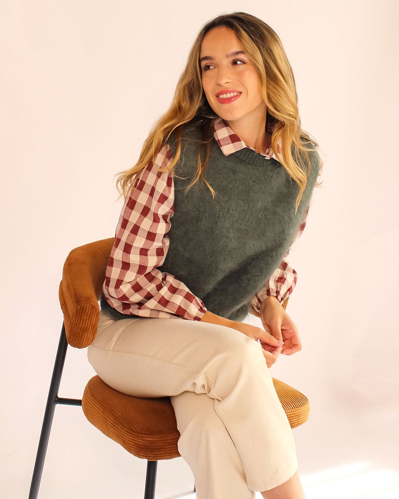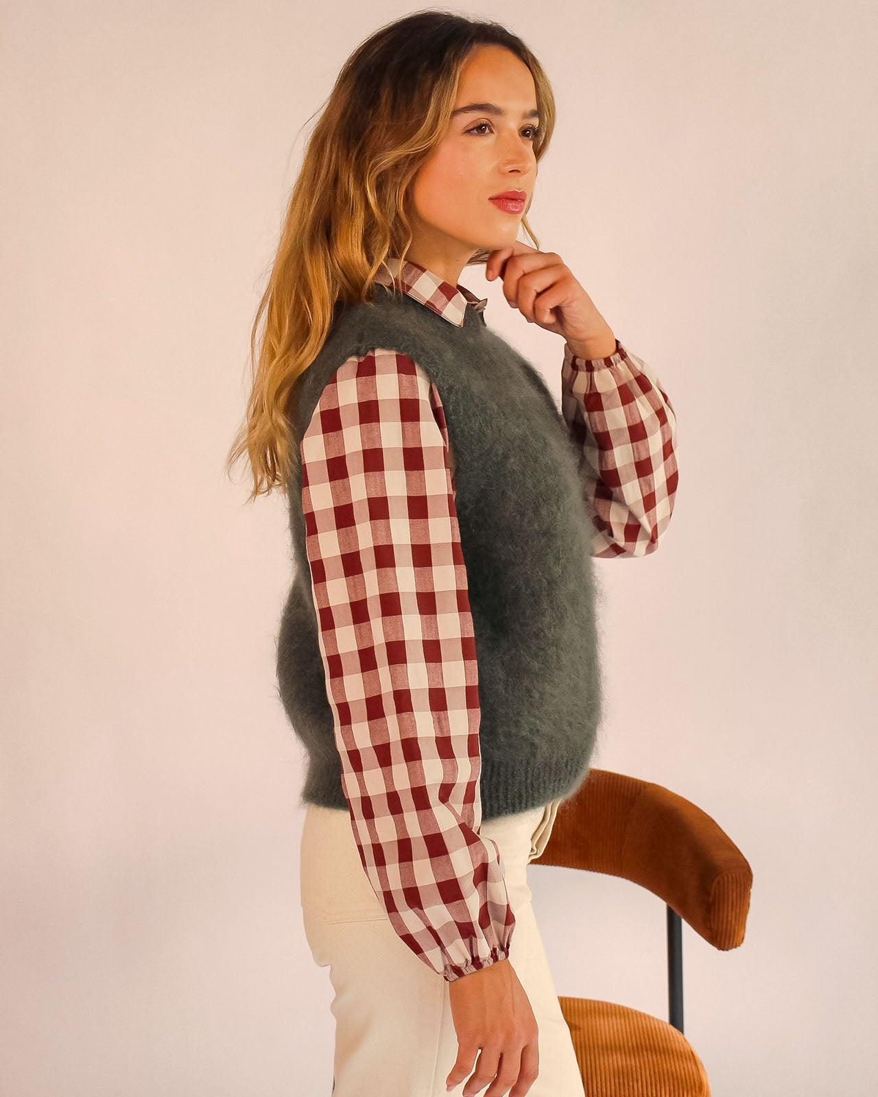 Calvin, c'est le pull sans manches doux et moelleux dans lequel on a chaud et on se sent bien. Il est canon porté avec une chemise ou un tee-shirt manches longues !