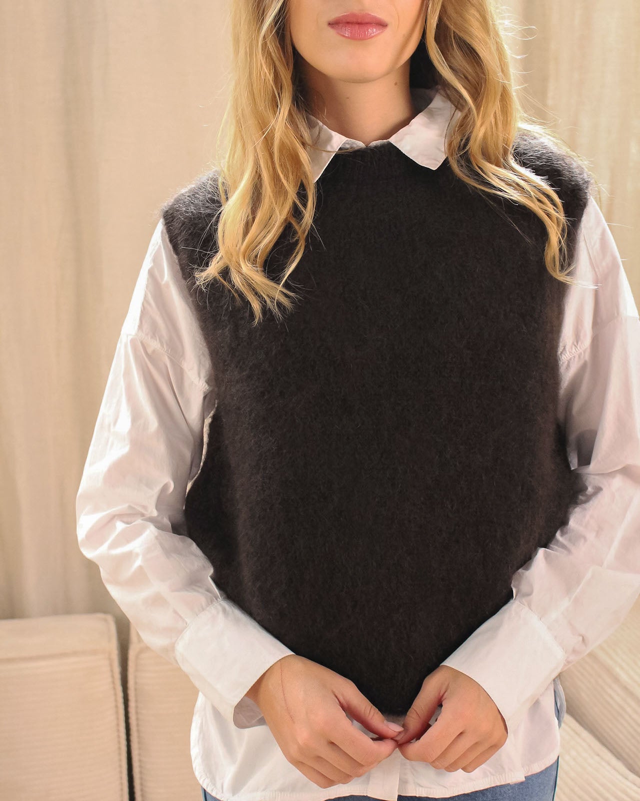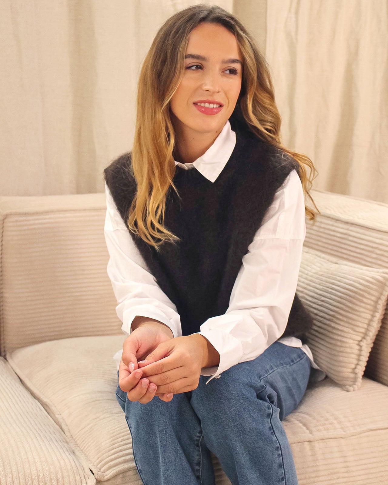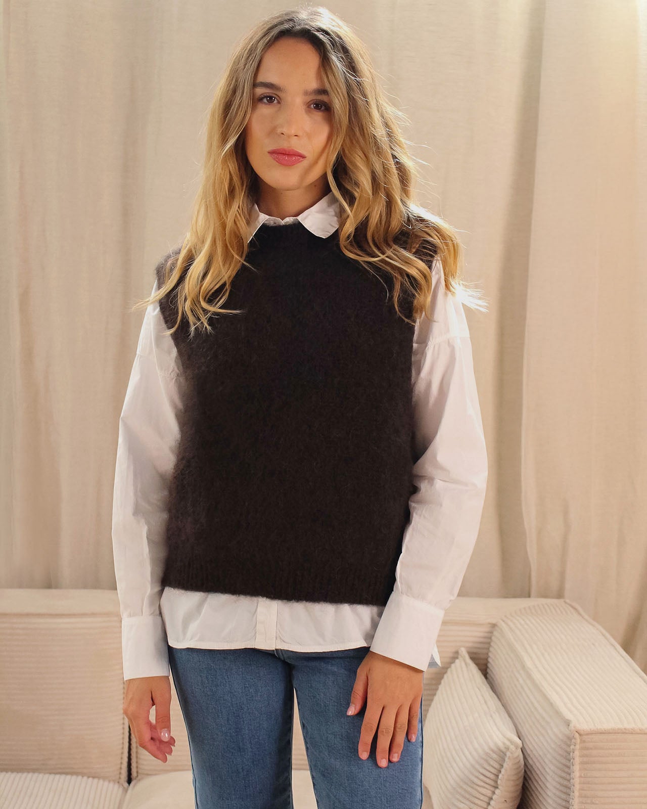 Calvin, c'est le pull sans manches doux et moelleux dans lequel on a chaud et on se sent bien. Il est canon porté avec une chemise ou un tee-shirt manches longues !