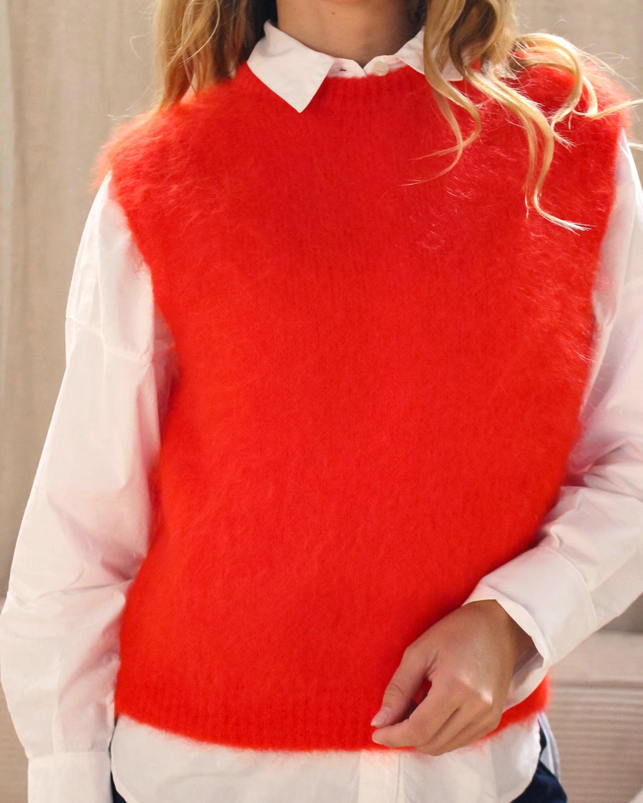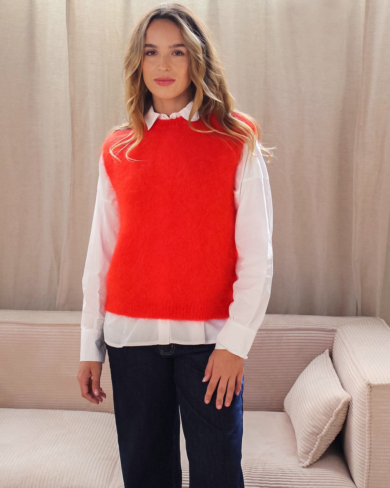 Calvin, c'est le pull sans manches doux et moelleux dans lequel on a chaud et on se sent bien. Il est canon porté avec une chemise ou un tee-shirt manches longues !